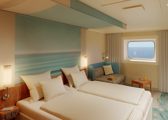 MA - Vonkajšia kajuta PREMIUM 14-16,5 m². Neotvárateľné okno. 4,5. paluba. Max 4 osoby. Cenový model Premium. | 2 540 € 1 270 € za osobu | ||