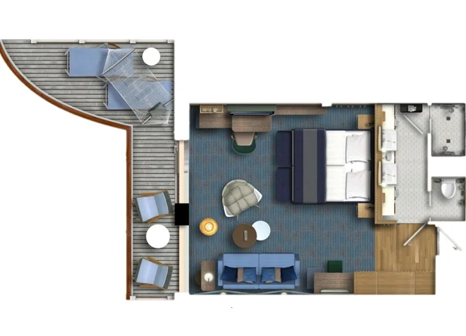 | JBAO - Junior Suite s balkónom 26 m² + balkón 7 m² so stolom. 10,11. paluba. Max 4 osoby. Výhody Junior Suite. | 10 198 € 5 099 € za osobu |