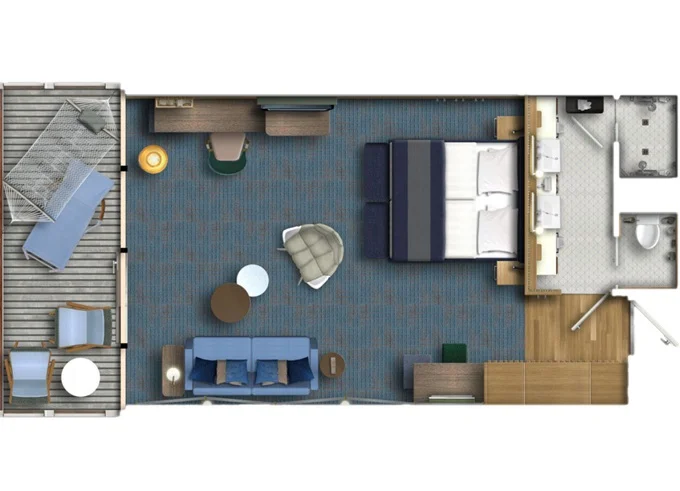 | JBAO - Junior Suite s balkónom 26 m² + balkón 7 m² so stolom. 10,11. paluba. Max 4 osoby. Výhody Junior Suite. | 9 598 € 4 799 € za osobu | ||