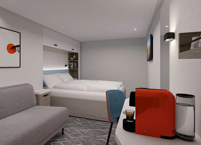 | EKBO - Kajuta s balkónom Single 11 m² + balkón 5 m². 11. paluba. Max 1 osoba. | 4 079 € 4 079 € za osobu |