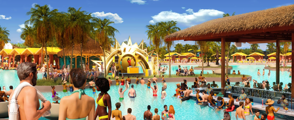- Floating AquaBanas (12 kabín na prenájom) poskytujú osem miest na sedenie, pevný stôl, protišmykové povrchy a priamy prístup do Starfish Lagoon. Chatky sú zoskupené okolo polostrova s vyhradeným nápojovým barom